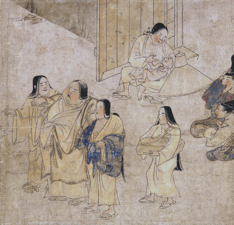 「最近、七条あたりに金貸しをする女があった。家は裕福で、食が豊かなせいで、体が太り、肉は余って、歩くのも容易ではなくなってしまった。付き添いの侍女たちが救けても、汗が流れて滴り、とにもかくにも苦しみは尽きなかった」