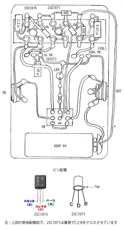 あと、これは実はもうずいぶん前にやってそのまま放置してあったんだけど、上記配線の実体配線図ってやつもスケッチして描いてみた。これである。