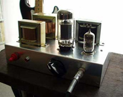こうなると、自分でもがぜん作ってみたくなる。特にギターアンプは、出てくる音の善し悪しが、オーディオアンプに比べてどう考えてもはっきりしている。いや、そうではないか、20年以上ギターを弾いている僕としては、ギターアンプから出てくる音に関しては、かなり耳がこえているわけで、数ヶ月前に始めたハイファイオーディオを聴く耳の比ではない。それに、ギターアンプの場合はどう考えても、音作り、という面が大きく、音の個性が最重要なので、いろいろいじって遊べそうでもある。そこで、最もシンプルなやつを練習用に作ってみることにした。