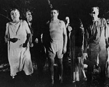 ゾンビの古典、ロメロのナイトオブザリビングデッド一作目だと思って借りてきて、よくみたら「30周年記念版」という文句がついていた、よくある話である。ロメロのゾンビの一作目のフィルムに、適当に新撮をつなぎ合わせた映画だそうだ。しかも、それをやったのはロメロじゃなくて、脚本家の方なんだってさ。付け足した部分はともかく、一作目を見ていない僕にとっては、けっこう良かったよ。最初に出てくるただの若者二人組と、偏執狂風神父は付け足しだそう。なので、その後からが一作目ということになるのだが、そうなると、いい始まり方だね。墓参りに来る若い兄妹が墓場で軽くふざけてるところをカメラがフォローしてると、たまたま、という感じで、むこーうの方に一人目のゾンビが歩いてるのが突然フレームインするんだよね、これはとってもいい。あと、ゾンビが人間の肉を食ってるシーンだけど、あまりにも満足そうに、おいしそうに食っていて、なんか、ウロウロとゾンビ歩きしてさまよって、うまいものを見つけてつかの間の快感に陶然として、またウロウロ、と、映画から教訓を読みとるのはキライなのだが、見ていて、あー、浮き世だなー、と思っちゃったよ。それにしても、付け足しの偏執狂風神父は、最後の最後にも出てきて、ひたすら「神にそむくものたちよ云々」とやるわけだけど、この役者がスキンヘッドで、エロ髭を生やし、前歯をむき出して叫び、めちゃくちゃ怪しいヤツで、こいつのせいで、せっかくの格調高いオリジナルがB級ホラーになっちゃってるけど、これってわざと?