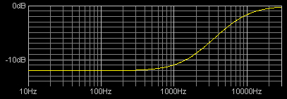| BRIGHT回路の周波数特性(C=120pF, VR=1MΩで音量1/4に絞ったとき) |