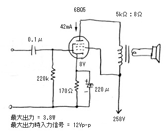 5極管シングル電力増幅回路 |