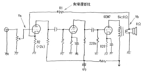 出力管が3極管のときで、球の内部抵抗が低いときなど、NFBゼロも十分あり得る。あるいは1、2dBから6dBぐらいまで控えめにかける。出力管が5極管のときは内部抵抗が高くてそのままだとDF(ダンピングファクター)が悪くなってしまうので、6dB以上ぐらいかける。20dBを超えるNFBは発振など動作不安定を引き起こすことが多く、難しい。といったところか。この辺は賛否両論が今でも続いていて、このように明文化するのは危険だが、かといって書かなければ初心者にはなんだか分からないので、あえて書いておいた。このNFBは、経験によるところも多く、音を聞きながら自分で判断するのがよいのではないだろうか。